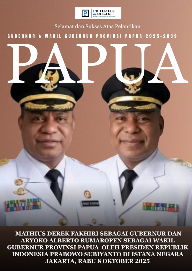 Mari kita dukung penuh kepemimpinan mereka untuk membawa kemajuan, kesejahteraan, dan persatuan bagi seluruh rakyat Papua. Semoga amanah ini membuahkan hasil positif bagi provinsi tercinta,"kata Ketua Peradi Kota DR Pieter Ell, Rabu (8/10/2025) pagi.