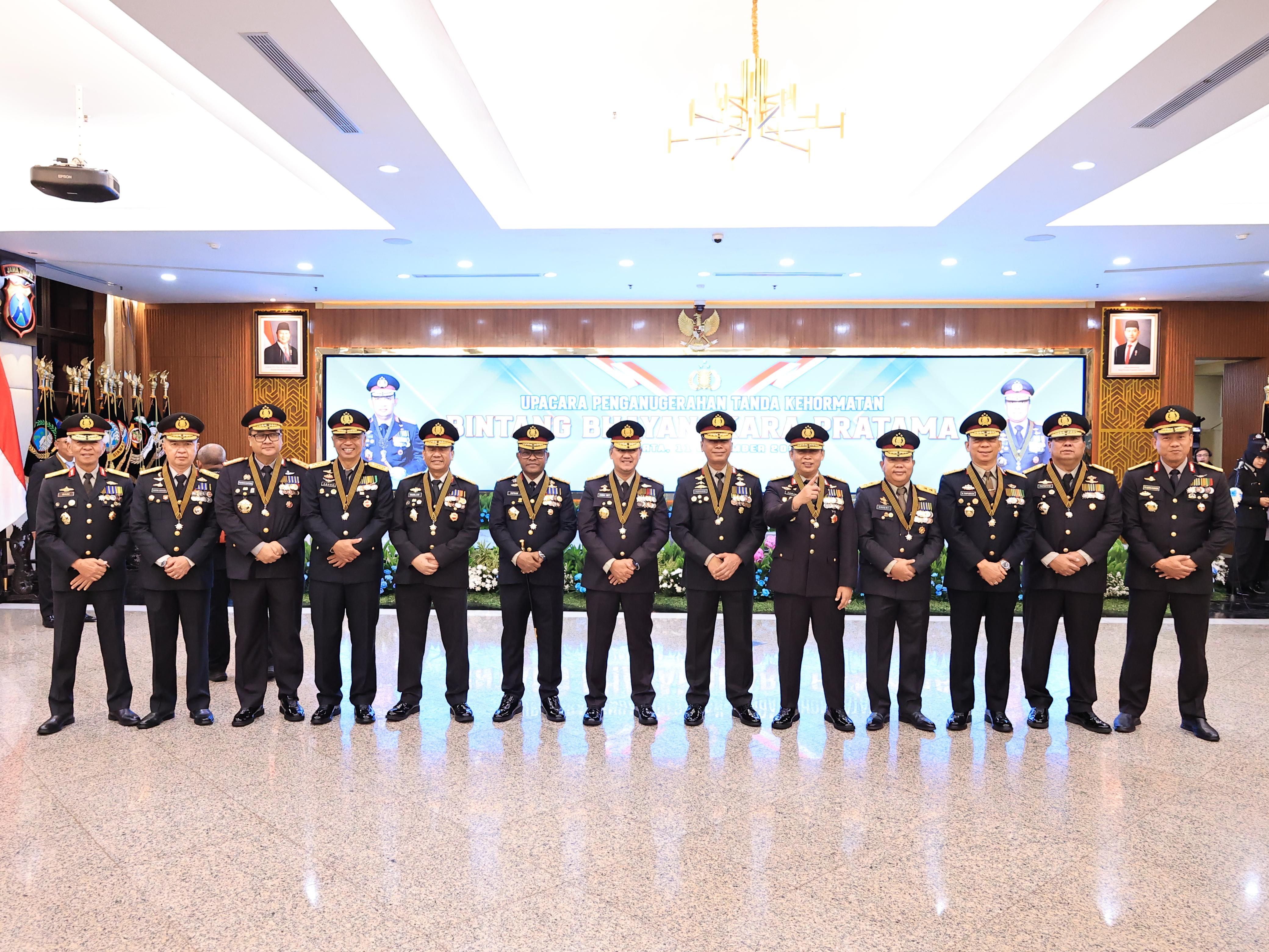 “Bintang Bhayangkara Pratama adalah bentuk apresiasi atas pengabdian yang tulus dan tanggung jawab besar dalam menjaga keamanan serta memperkuat sinergi lintas sektor demi kepentingan bangsa dan negara,” ujar Kapolri.