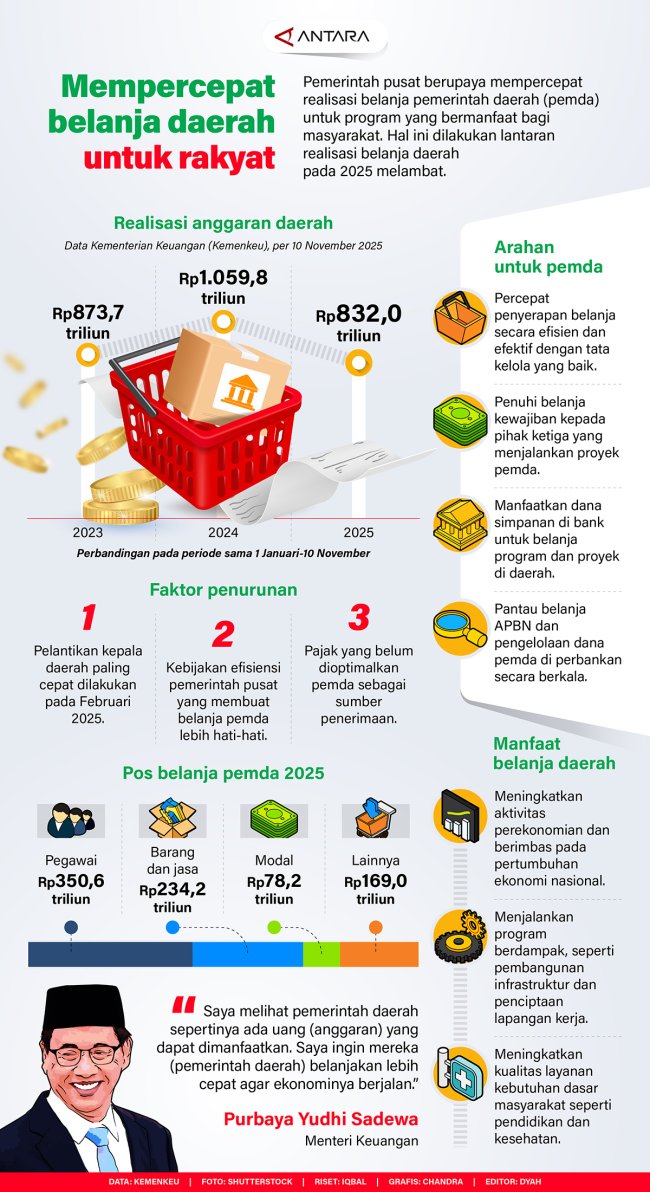 Pemerintah pusat berupaya mempercepat realisasi belanja pemerintah daerah (pemda) untuk program yang bermanfaat bagi masyarakat. Hal ini dilakukan lantaran realisasi belanja daerah pada 2025 melambat.