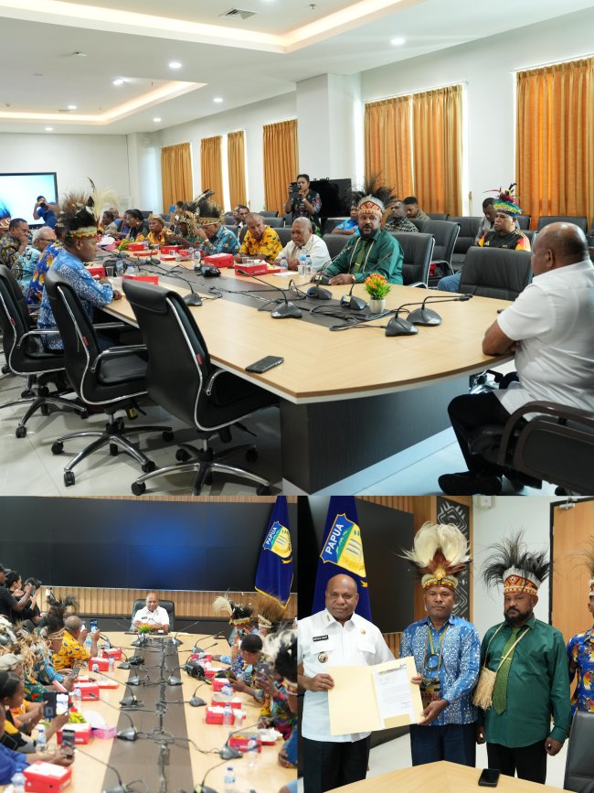 Pernyataan bersama yang diserahkan Ketua Umum Dewan Presidium Masyarakat Adat Tabi Papua Ismael Isack Mebri yang juga Ondofolo Kampung Yoka kepada Gubernur Papua Mathius Fakhiri, Jumat (24/10/2025).*